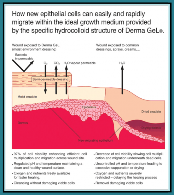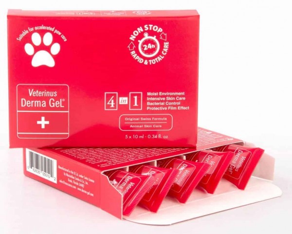 Sprej za rane za pse kot tudi za mačke, konje, koze, ovce, perutnino oz. vse ostale živalske vrste. Derma gel omogoča intenzivno celjenje in zaščito ran in poškodovane kože. Nudi in ohranja vlago povrhnjici z zmožnostjo čiščenja in odstranjevanja nekrotičnega tkiva. netoksičen zeliščni gel pospešuje čas zdravljenja odganja insekte in ustvarja zaščitni sloj, zato ni potrebno povijanje. Dermagel sprej za rane za pse, konje itd. spodbuja naravno rast dlake na prizadetem mestu in maksimalno neguje kožo ter jo ohranja gladko. Priporoča se pri negi ran, preležanin, oteklin, zmečkanin, ognojkov, pikov žuželk in ugrizov. Primeren tudi za nego kirurških ran. Unikatne rastlinske tinkture oz. ekstrakti, ki vsebujejo aktivne sestavine variabilne glede na čas žetve, vremenske razmere, kakovost zemlje… Sprej za rane za pse Dermagel je zasnovan na osnovi edinstvenih spojin izjemno kakovostnih botaničnih ekstraktov Hidrogel – izotoničen slana baza – ph nevtralen učinek zaščitnega filma čez rano – sinergistični učinek na epitelne celice – zmanjša obseg poškodovane kože ne mutagen brez prepovedanih učinkovin varen za uporabo: v času brejosti, če žival gel poliže itd. DERMAGEL: Zeliščni hidrogel za intenzivno celjenje ran. Sestavine: standardizrani polisaharidi (ekstrakti Pyrus Sorbus); Centella Asiatica (standardizirani ekstrakt); vrtni ognjič (standardizirani ekstrakt); ekstrakti žajblja, timijana, majarona in sivke; propilen glukol; hidrogenirano ricinovo olje; soda bikarbona; glicerin; alkohol; prečiščena voda (Aqua Purificata); Carbomer. Za uprabo v veterini. Navodila za uporabo gela: ob vsakem nanosu najprej očistite obolelo mesto in nato nanesite Derma gel. Postopek ponovite vsaj 3 x dnevno. Za boljši učinek nanesite Dernagel tudi v neposredno okolico okoli obolelega mesta. Po 24-ih urah pustite poškodovano mesto nepokrito, da Dermagel ustvari zaščitno bariero in ohranja mesto poškodbe vlažno. Izogibajte se uporabi izdelka na kožnih spremembah kot so npr. bradavice in glivične okužbe. Navodila za uporabo spreja za rane za pse: ob vsakem nanosu najprej očistite obolelo mesto (s toplo vodo ali fiziloško raztopino) in nato pošpricajte Derma gel. Postopek ponovite 3-4 x dnevno. Opozorila: Ne vsebuje steroidov in je popolnoma varen ob zaužitju, tekmovanjih, pri uporabi za breje živali oz. živali v laktaciji. Da bi preprečili širjenje poškodbe na okoliške dele kože, jih prav tako namažite z sprejom za rane za pse. Hraniti v hladnem in temnem prostoru, izven dosega otrok. Ni za uporabo pri ljudeh. Vsebino zaščitite pred zmrzovanjem, vročino in toksično radiacijo.