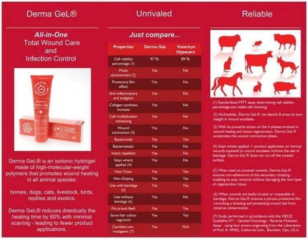 - Gel za rane namenjen za pse, konje, koze, ovce, mačke, perutnino, ptice, plazilce, govedo kot tudi ostalo živino in eksotične vrste.