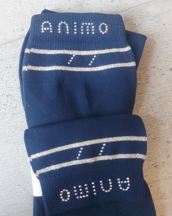 Animo nogavice v modri barvi z srebrno črto in kamenčki