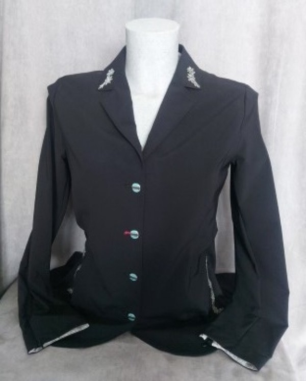 Animo ženski tekmovalni suknjič Liara v črni barvi z detajli na ovratniku in ob žepih.