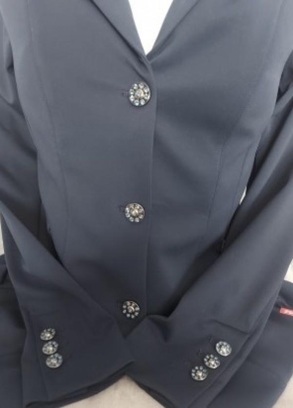 Animo ženski tekmovalni suknjič Loric v modri barvi. Z kristalčki na ovratniku, in gumbih.