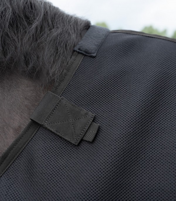 Posebej zračna podloga iz zračne mrežaste tkanine. Visokotehnološki material omogoča dobro prezračevanje in znojenje ter hkrati ohranja toploto konja. Zračna mrežasta tkanina prav tako preprečuje kopičenje toplote. S preprostim zapiranjem v obliki črke T. Po 2 elastična trakova Velcro na ramenskem in zadnjem delu za enostavno pritrditev na vse zunanje preproge Waldhausen Economic, Comfort in Premium. Ta pokrivalo je idealno za velika temperaturna nihanja.
