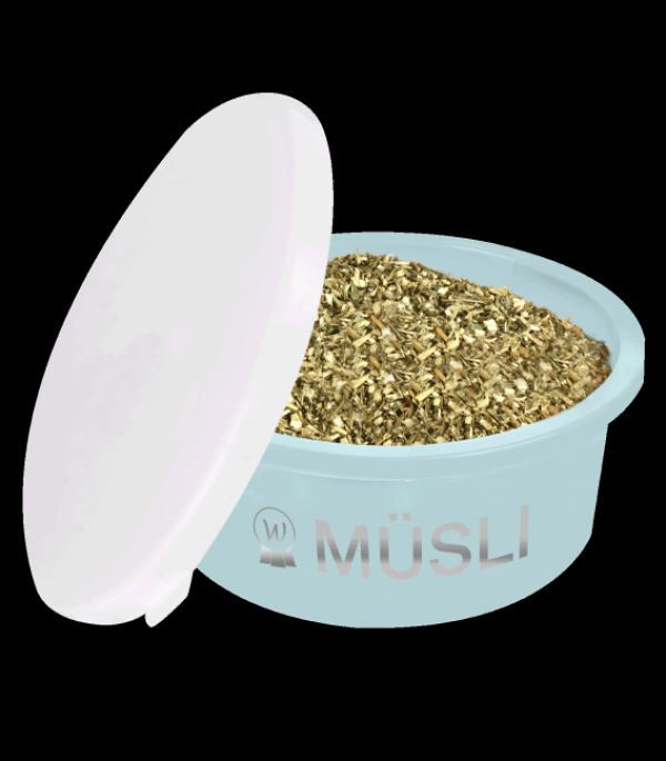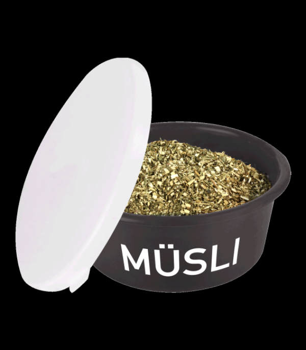 - Visokokakovostna in robustna posoda za krmila s pokrovom, ki preprečuje dostop mišim.