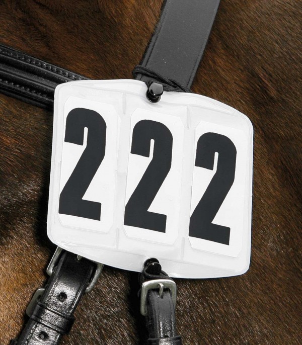Prednosti in lastnosti - Tekmovalne številke za uzde iz mehkega plastičnega materiala, brez trdih robov za občutljive konje. - Tekmovalne številke, ki jih je enostavno zamenjati. - Nastavljive od 1-999. - Vključno z gumijastimi trakovi za pritrditev. - Par.