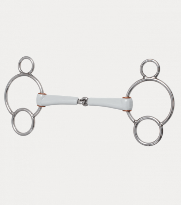 Naš novi enkrat in dvakrat lomljene brzde so še posebej tanke v svojih dimenzijah - široke kontaktne površine in nizka višina zagotavljajo več udobja tudi v manjših konjskih ustih. Površina plastike je zelo gladka in dobro drsi v ustih, tudi pri konjih, ki v ustih proizvajajo malo sline. Ustnik leži na jeziku in ustnicah s svojo široko kontaktno površino in se subtilno prehaja v zasukano prilegajočo se olivno obliko. Spoji in srednji del so fino obdelani in nameščeni tako, da ustrezajo nizki višini brzde. Zagotavljamo, da nastavki gladko drsijo zaradi vgrajenih bakrenih vtičnic.